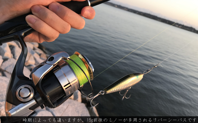 ベイトが小さい春シーバスは7g、落ち鮎シーズンなどのベイトが大きい時期には30g程度のルアーを扱えると頼もしいです。ヒラメやカサゴなどの根魚ルアーフィッシングにも併用可能。適合ルアーウェイトは、その程度のルアー重量を扱えるモノがおすすめです。