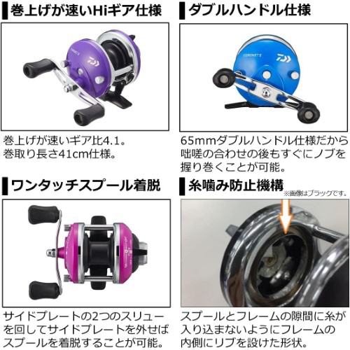ダイワの名作穴釣り特化型ベイトリールのコロネットです。手の平サイズでコンパクトかつシンプルで使いやすいため、多くのユーザーから人気を集めているお手軽リールであり、堤防釣り、波止釣り、穴釣り、ワカサギ釣り等、小物釣りを楽しむだけならコロネットで十分すぎます。「糸噛み防止機構」や「ラインストッパー」など標準装備。そのため、ビギナーや子どもにも使いやすい仕様となっています。