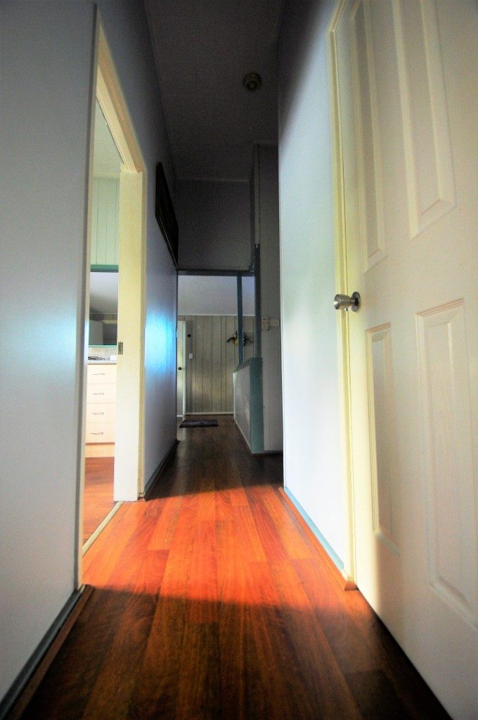 廊下もすこぶる綺麗である。謎の水たまりや蟻の行列もない。床は綺麗なフローリング。