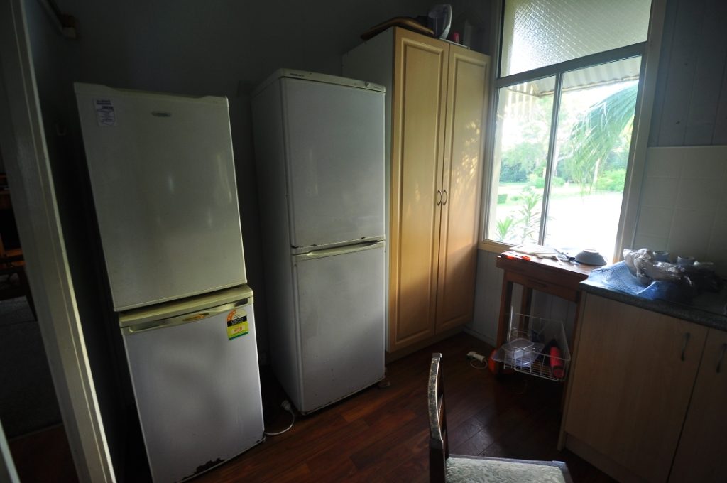こちらがキッチン。コンロが4つあり、冷蔵庫も4つある。