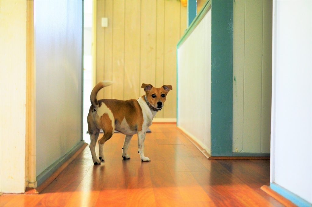下の階に住む老夫婦が犬を飼っているので、たまに階段を上がって遊びにくる。毛並みの良い犬で、人懐っこく愛らしい。