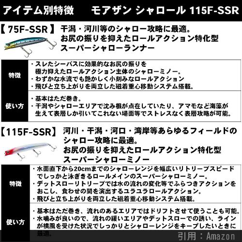 さらに飛距離UP、デッドスローで誘いたければサイズは大きくなりますが『115F-SSR』もおすすめです。