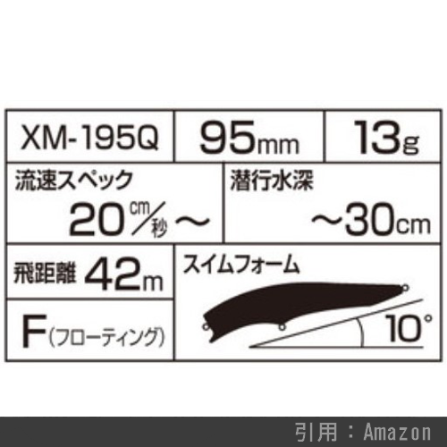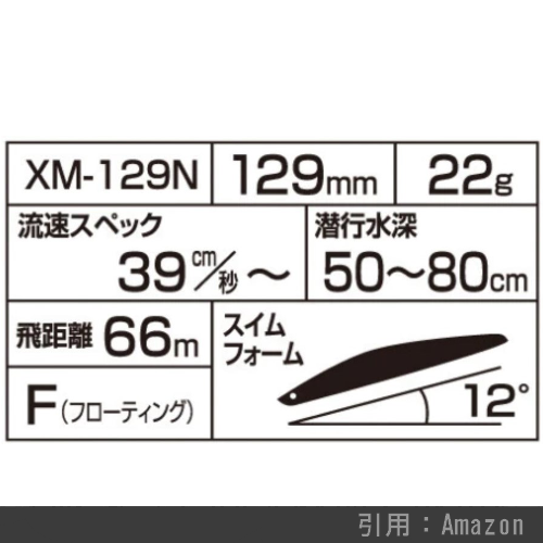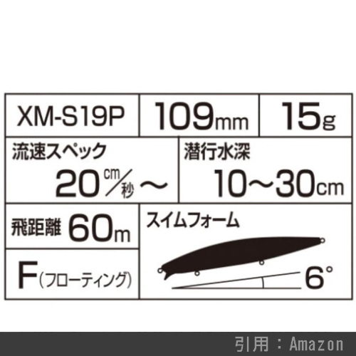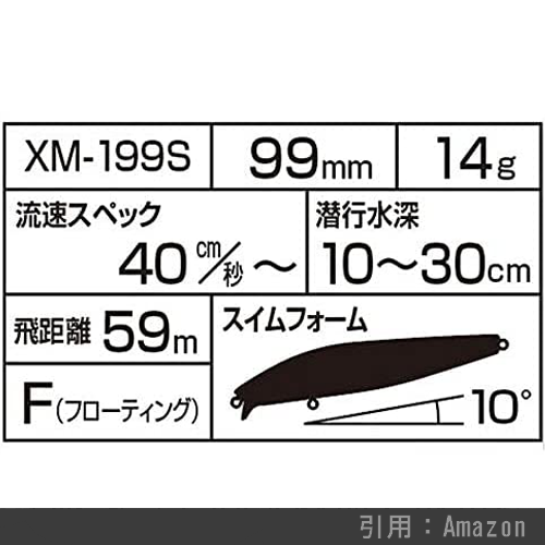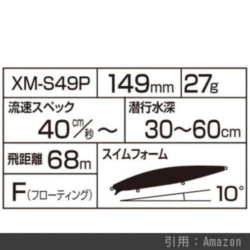 リップの角度が浅いスクエアリップとなっており、30cm以浅のシャローレンジを巻いてくることが可能。河口・干潟と港湾まで使いどころを選びません。149㎜というサイズにしては20gという軽さですが、XAR-Cシステムを搭載することでスリムボディでもしっかりと飛び、軽快な泳ぎを実現しています。
