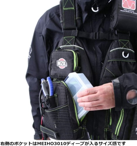 - 左側には必要最低限な小物を入れるポケットとジグホルダーを装備