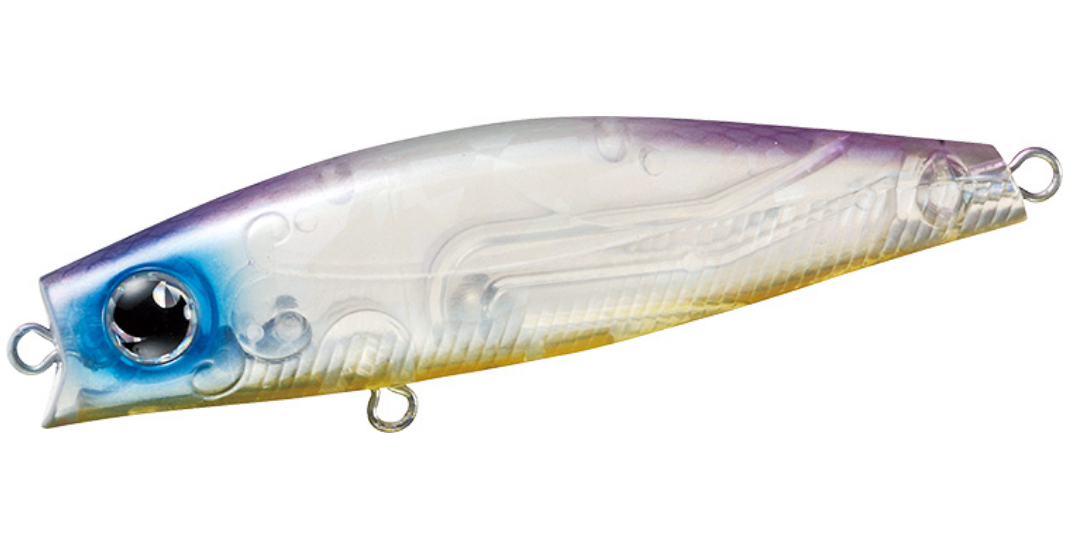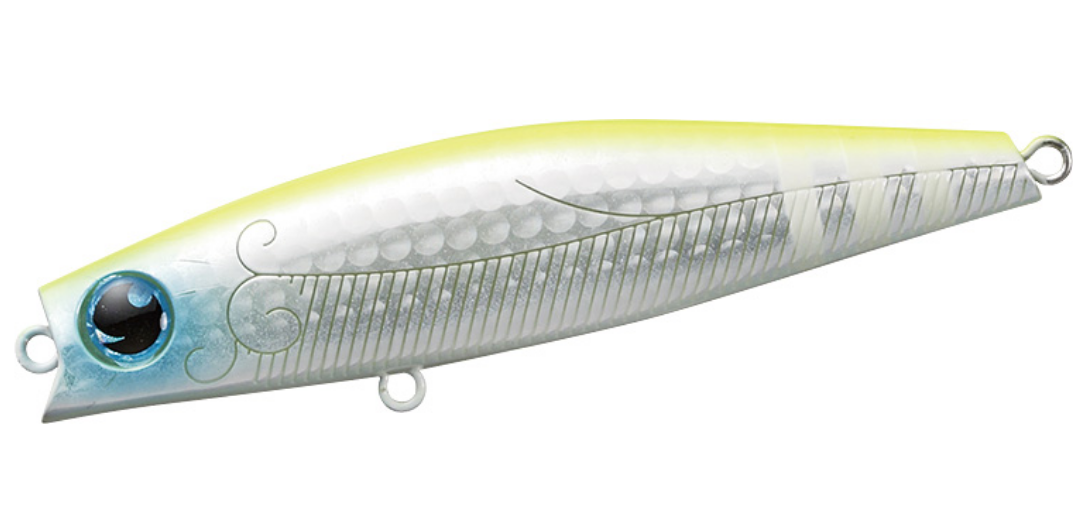 超低速~中速の流れを得意とし、スローピッチなウォブリング&ローリングアクションで水中を優雅に泳ぐ小型ベイトフィッシュをイメージ。またジャークによる足の長いダートアクションは水面直下を逃げ惑うベイトフィッシュを演出し、ステディリトリーブでは食わせることのできないシーバスに口を使わせる。