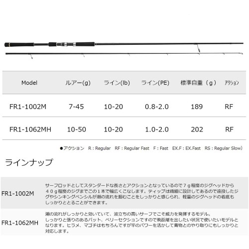2022年にモデルチェンジしたアーリーのサーフモデルです。103Mはサーフのフラットフィッシュだけでなく、干潟・河口域のシーバスにもマッチする汎用遠投モデルとなっており、初心者向けサーフロッドの名に相応しいセッティング。9cmクラスのミノーから40gまでのシンキングペンシルやジグミノー、ジグヘッドなど幅広いルアーを使用出来る汎用性能。ウェイトの異なるルアーも広いリリースポイントにより軽快なキャストフィールを実現し、かつ少ない力で飛距離が出せるため、過酷なラン&ガンゲームにおいても大きなアドバンテージを与えてくれる一本です。もちろん、扱いやすさの中に秘めた高感度性能も併せ持ち、広大なサーフエリアを確実に探れる一本に仕上がっています。