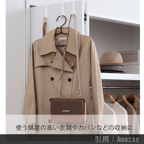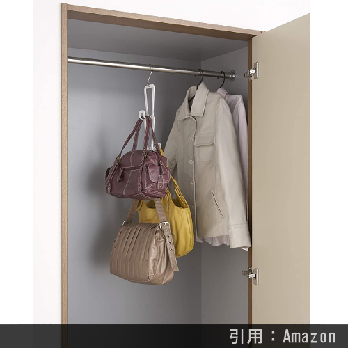 サイズの異なるタオル類やハンカチ、軽めのバッグなどの小物を収納するのに便利です。クローゼットの中の空きスペースを活用することが出来ます。