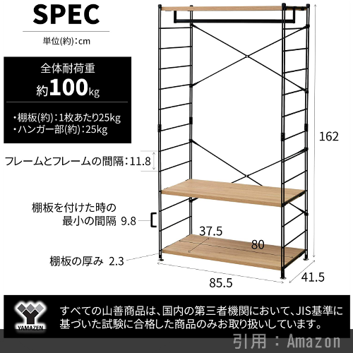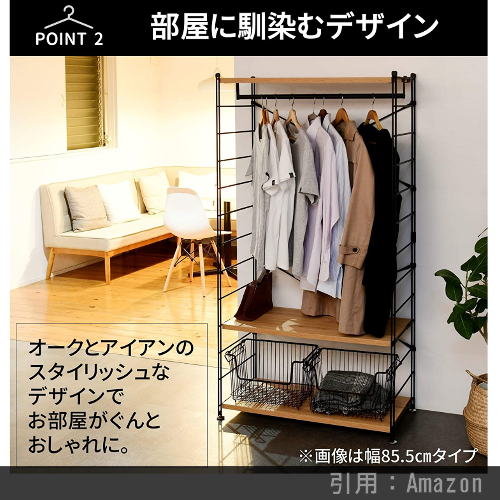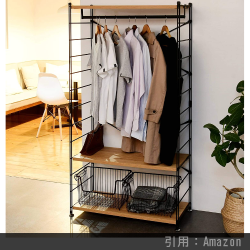 高さを調整出来て、下部をラックとしても使用できるため上着~靴下までを収納することも可能です。機能性はもちろんのこと、デザインも格好良いです。