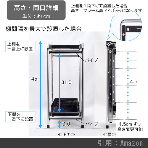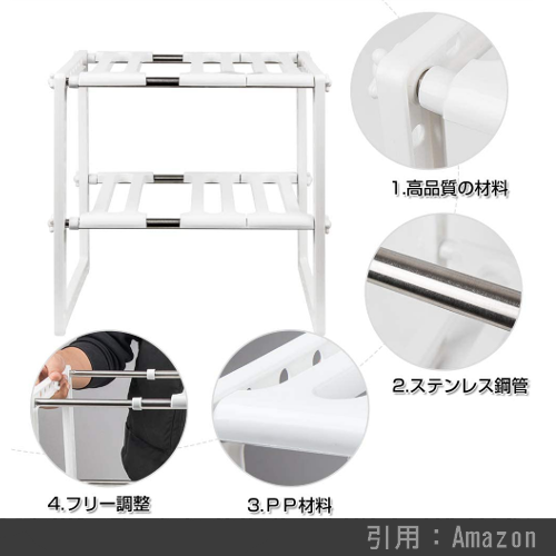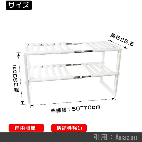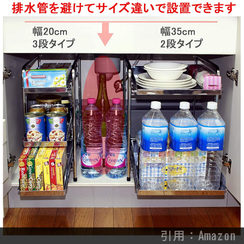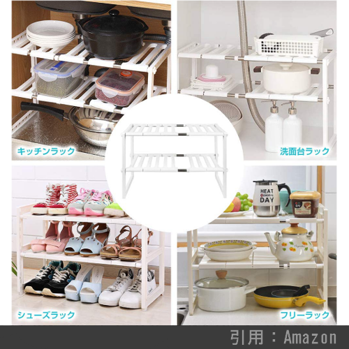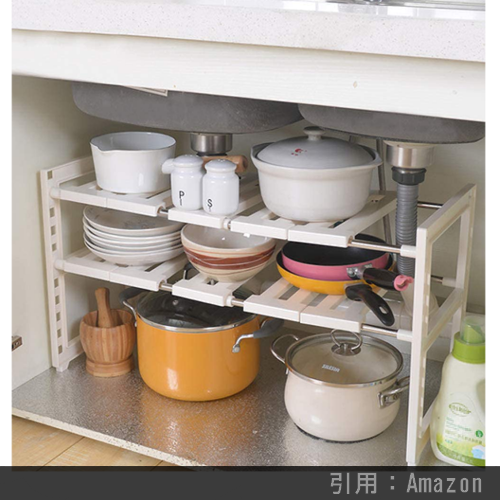 おそらくコストパフォーマンス最高のフリーラックです。ワンルームマンションありがちな『シンク下の空間』を上手く利用できるため、キッチン用品や洗剤等 いろいろなアイテムを収納するのに役立ちます。