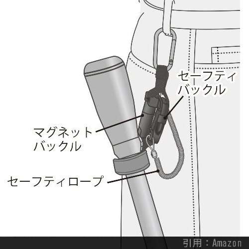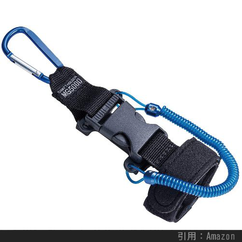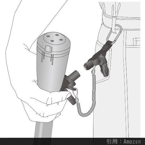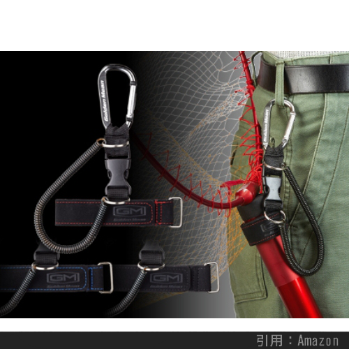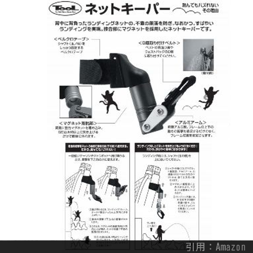 ランディングネット(玉ノ柄)等に簡単装着。カラビナを取り外さなくてもバックルをワンプッシュでツールを素早く脱着、スパイラルロープが不意な脱落を防止します。タモ網を背負う方には、やや使いづらいかもしれませんが、腰回りにつけたい方には利便性が良くておすすめです。