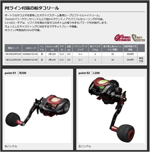 それでは実際に、陸っぱりタコ釣りに適したベイトリールを見ていきましょう。