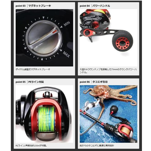 仕掛けは間違いなく回収できる攻蛸Ⅱです(PE8号付属!)です。耐久性を高めPEラインも付属したコストパフォーマンスモデルであり、価格は安め。できるだけ予算を抑えて堤防でのタコ釣りを楽しみたい方におすすめの両軸リールです。