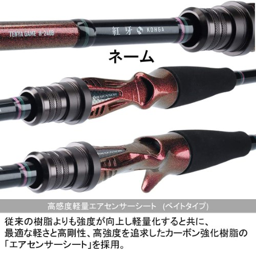 上級者も納得の調子、操作性、感度を誇るテンヤ竿『紅牙 テンヤゲーム』です。自重以上に持ち重り感にこだわり設計された軽量設計。さらには柔軟、軽量なチューブラー穂先はアタリを大きく出しフッキングもさせやすく、糸さばきや誘いでの操作性に優れ狙い通りの攻略を可能にします。