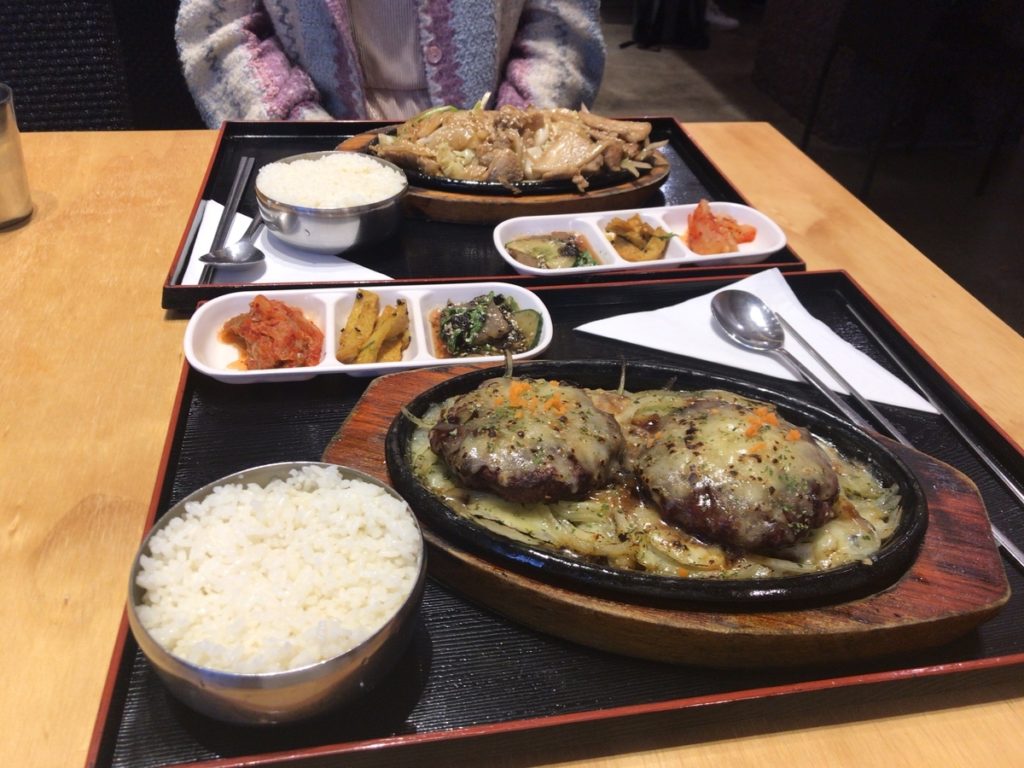 本当はプルコギが食べたかったんだけど、なぜかチーズハンバーグ的な料理を頼むことに。マジで何でそうなったのか思い出せないんだけど、まぁそれほどまでに緊張していたのでしょう。
