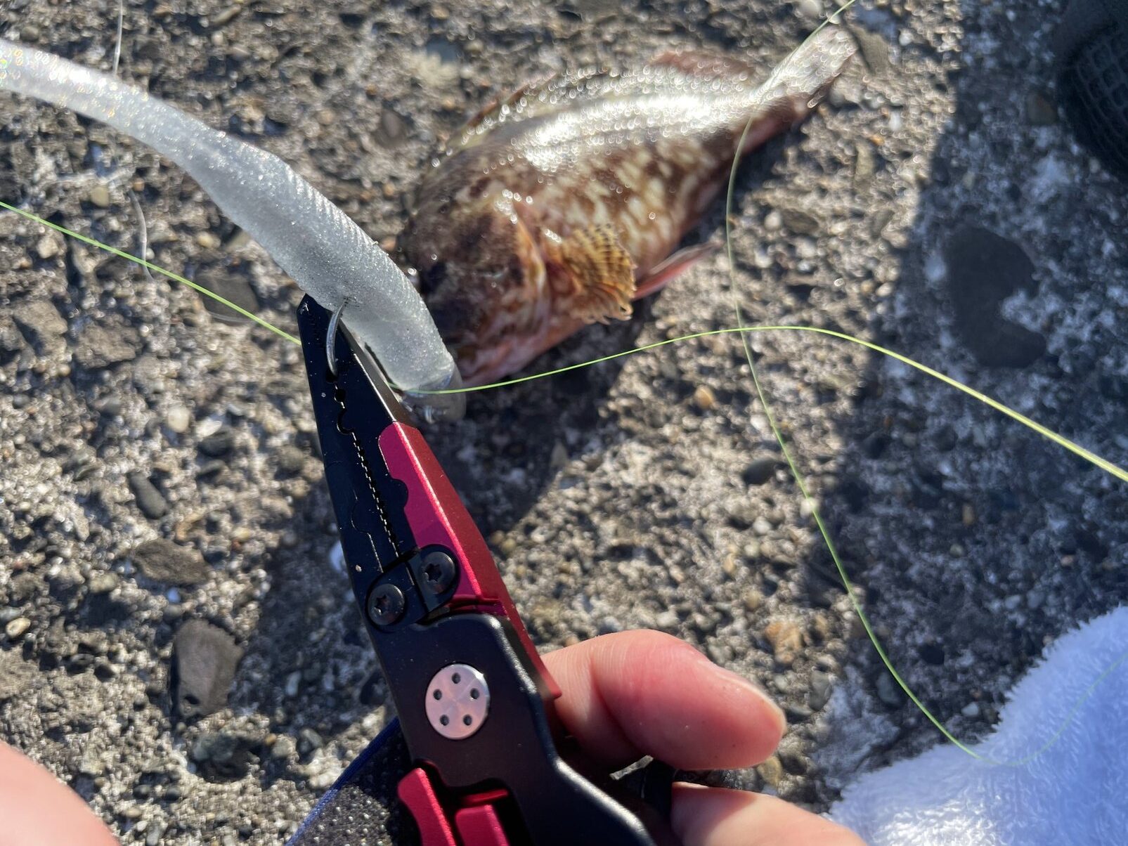 シーバスのような捕食が下手な魚には問題なく使えますが、ヒラメのようなルアーを丸呑みにする魚でも使用したい方は注意しましょう。別にプライヤーを購入する必要はないと思いますが、最低でもフィッシュグリップは使用すると良いです。