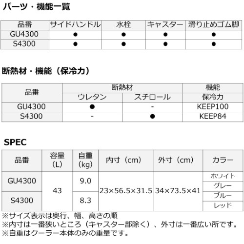 上のように、シマノやダイワのクーラーボックスであればイニシャルや名称から大体 断熱材が予想できます。