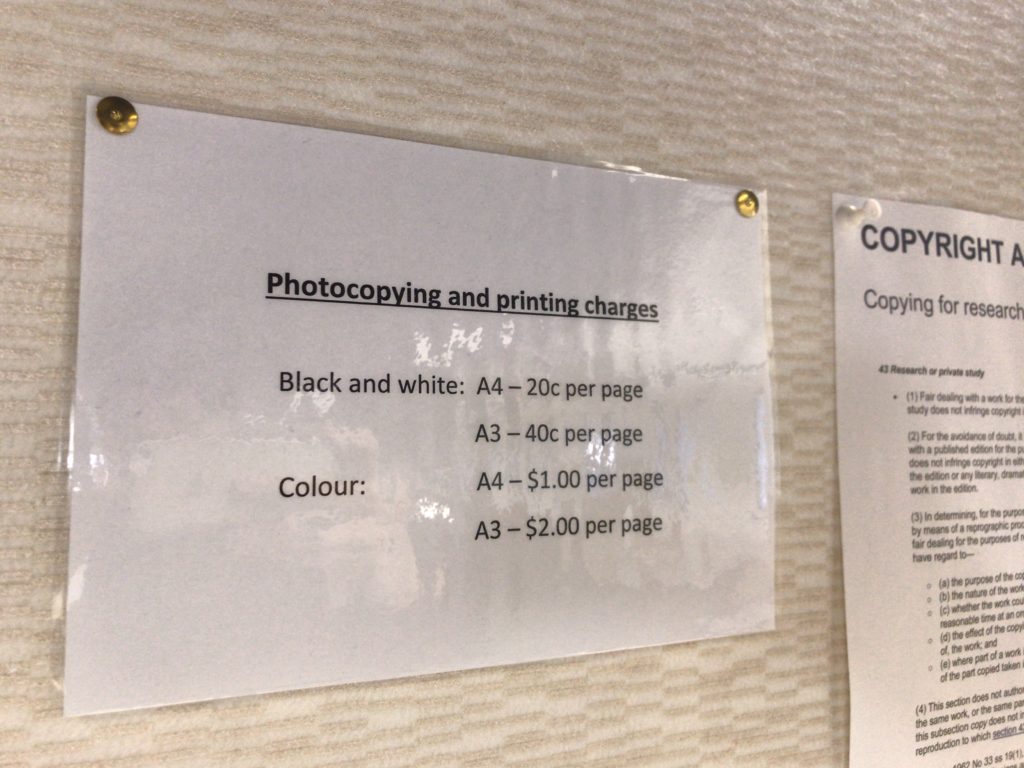 A4サイズは白黒が20セント、カラーが1ドル