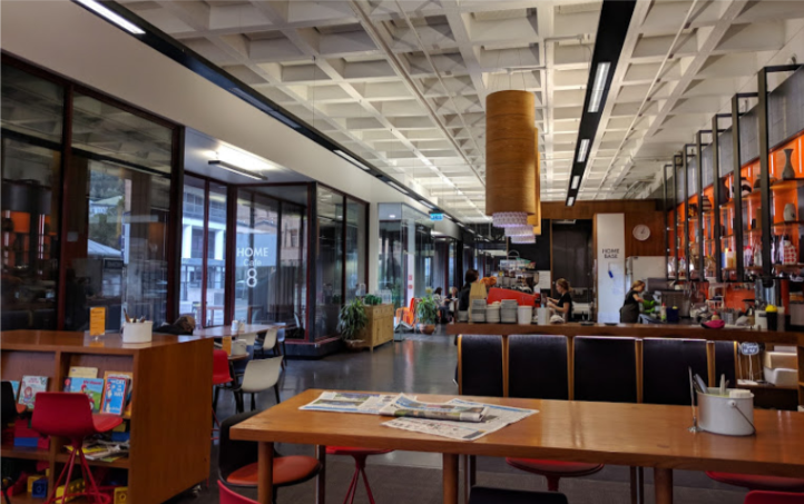 図書館は先述したように二階にあるのですが、1階は共有スペースというか雑談するためのスペースであったり、カフェがあったりします。