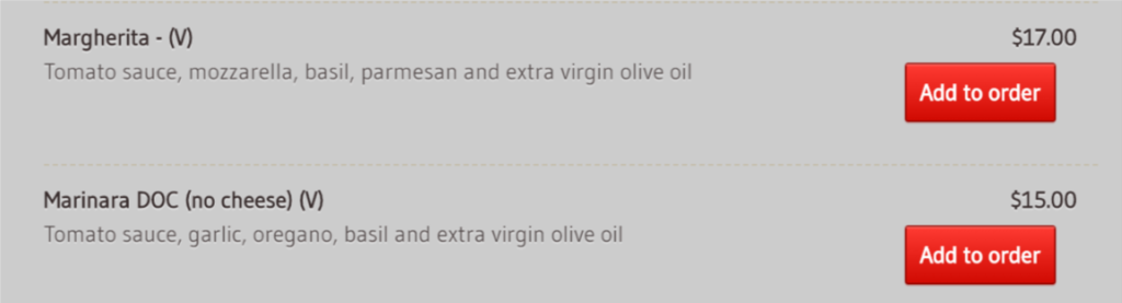 10ドルで食べられるのは上記の通り『マルゲリータ』と『マリナーラ(ヴィーガンメニュー)』の2つです。